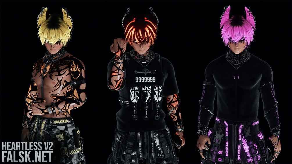 Black, White & Camo Presets: Heartless V2 has 3 different materials for all clothing options. White, Black & Camo. You can either pick individually what texture you want on what clothing pieces, OR you can use the presets and instantly switch everything on the avatar to full white, black & camo.